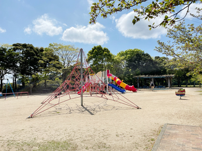 ブランコ、砂場、木馬など小型遊具もあるので小さい子どもも楽しめます。