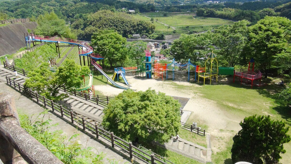 芝生の広場やローラーすべり台、アスレチック遊具があり、親子で楽しめます。